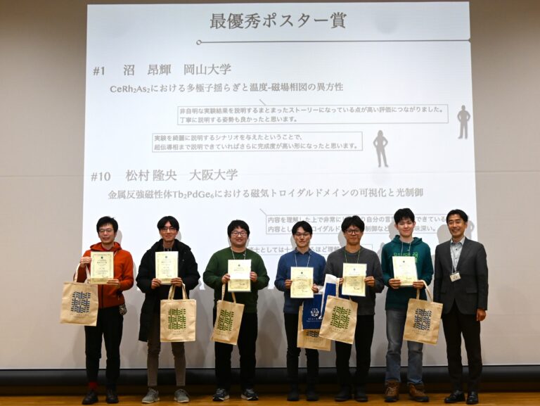 本領域は物質中の対称性の破れを軸に、新しい秩序や交差相関の創出・解明を目指している。発表では研究成果に加え、装置開発や共同研究の展開、業績報告なども多く、本会議が成果報告会として位置付けられていることが強く意識されていた。